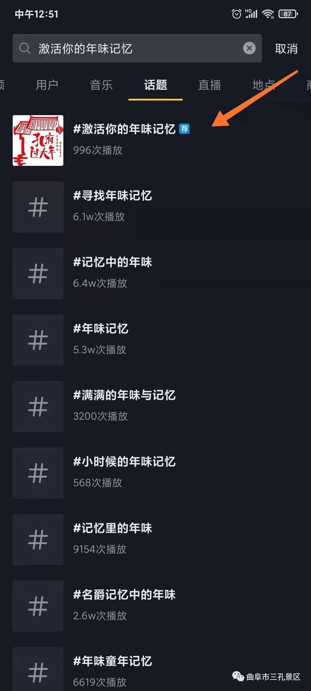 第二步:搜索 “激活你的年味記憶”,選擇“話(huà)題”搜索;